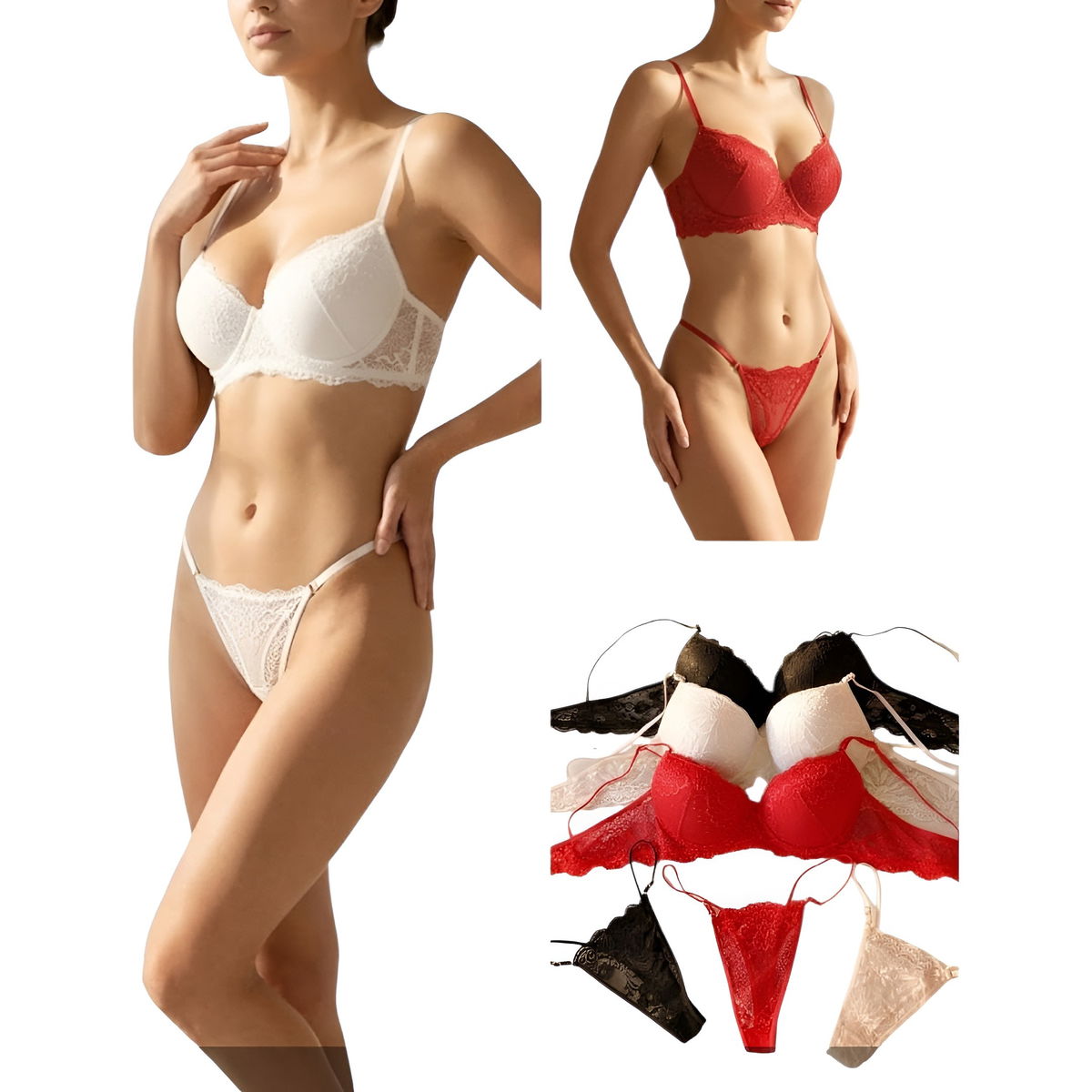 6 conjuntos de encaje con aro y colaless regulable SURTIDO